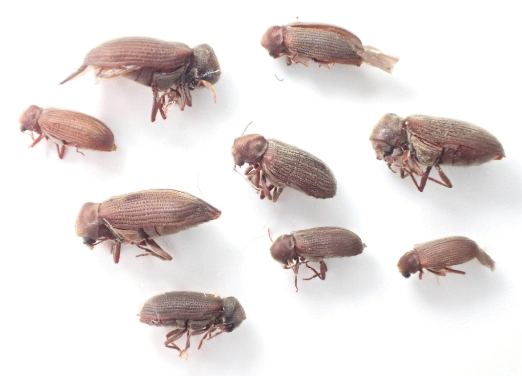 In spring and summer, they are commonly caused by mites developing in worm-eaten furniture, such as Pyemotes ventricosus, causing multiple red, itchy lesions. Throughout the year, various pathogenic arthropods coming from outside (e.g., from birds, rats or garden plants) may invade indoor spaces and cause health troubles.